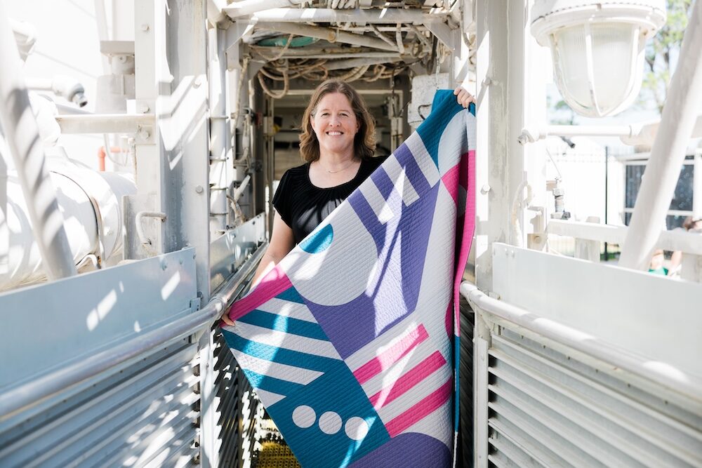 NASA engineer Sarah Ruiz has always had a creative side. As a kid, she loved drawing so much that she thought she might grow up to be a Disney animator. Her journey into quiltmaking might sound familiar—a T-shirt quilt here, a baby quilt there—but she veered off the beaten path when she discovered modern quilts. These days, Sarah is known for her quilts that incorporate surprising twists on traditional designs.