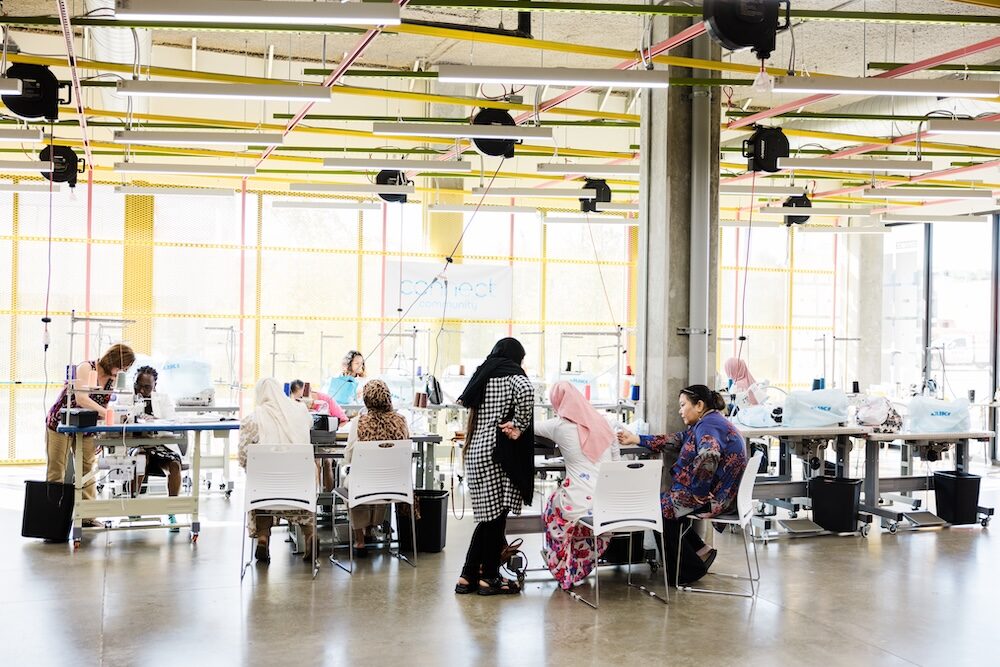 Fabric Forge may have started in two modest church basement rooms, but the nonprofit education center and white label production house now boasts a robust industrial sewing instructional program complete with English lessons, digital literacy courses, and free childcare. By reducing barriers to education, they help to empower local women to become major income earners for their families and their communities.