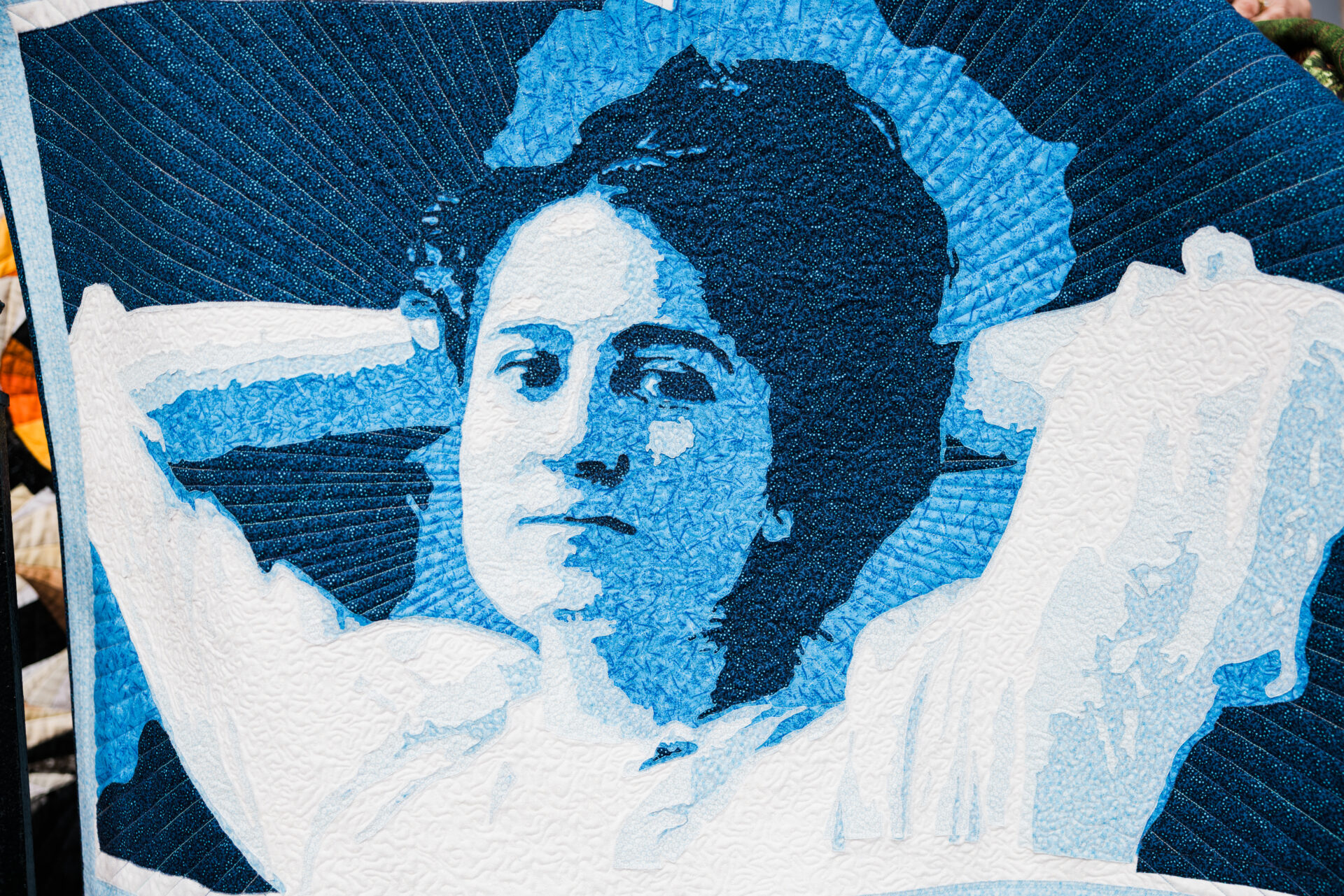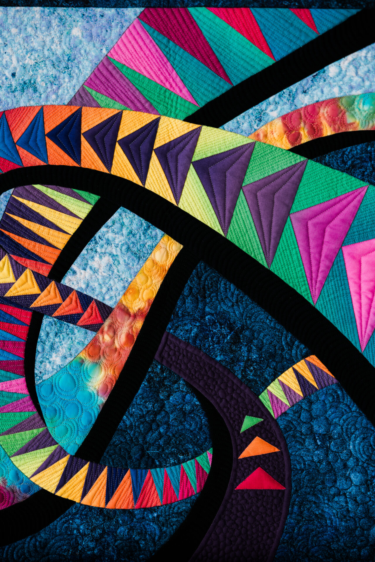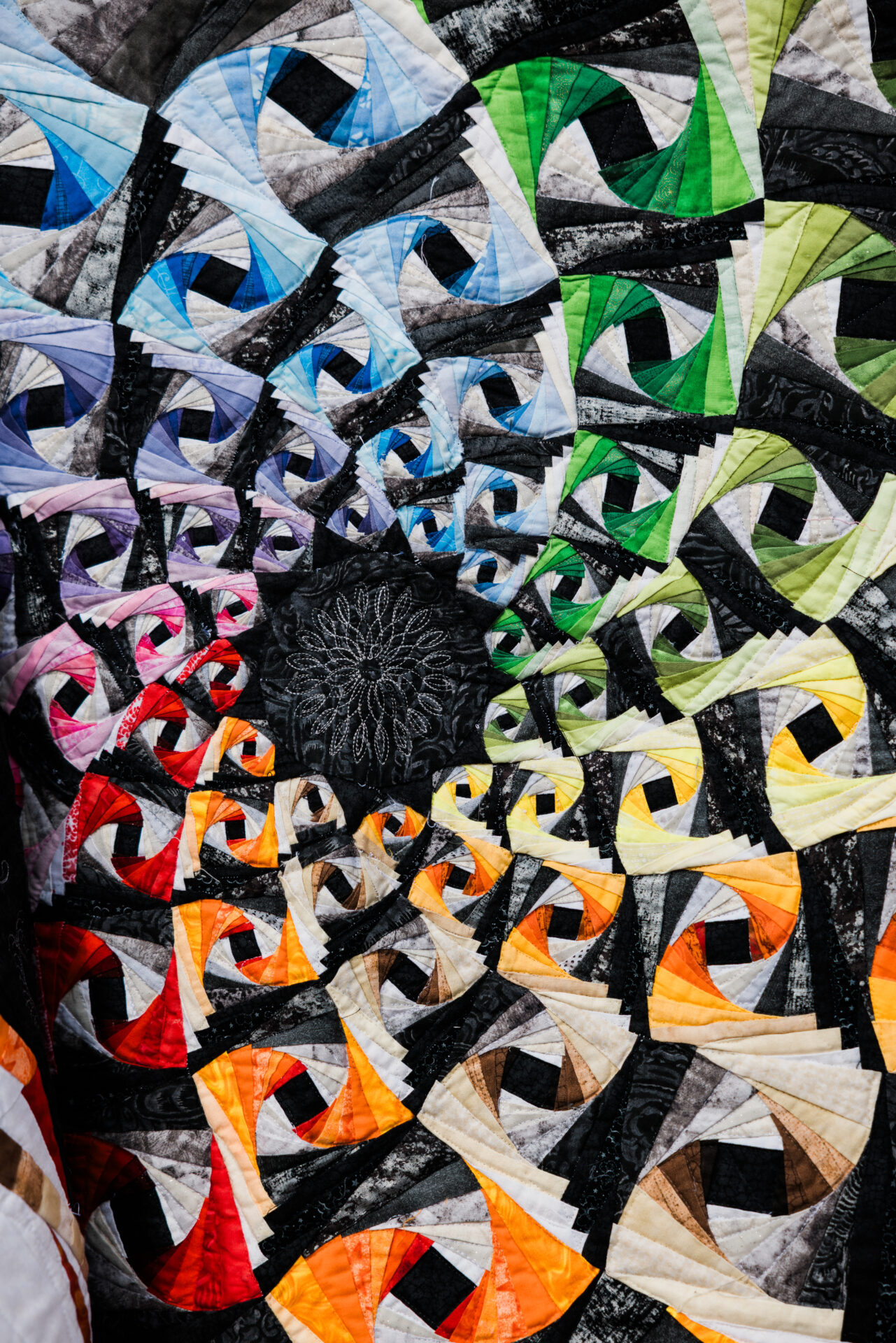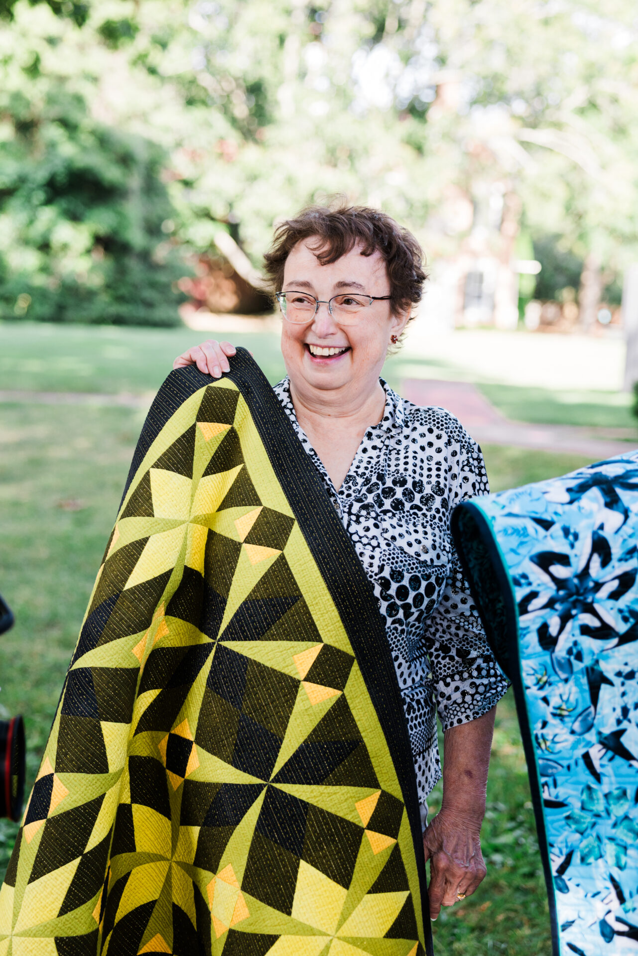 In 2025, after an eight-year hiatus, the guild hosted the Diamond State Quilt Show at Goldey-Beacom College in Wilmington. One hundred and fifty-four quilts hung in the exhibition, and rather than bringing in certified judges, the guild tried something different: people’s choice voting. “Everyone who came judged the quilts,” Barb said. “People who weren’t quilters loved seeing the quilts. People, especially the non-quilters, loved that they had input in [the awards].”