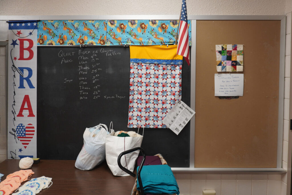 There, veterans take advantage of open sewing times or participate in volunteer-led quilting classes. All the fabric, thread, and batting are donated. Polly Graham, a veteran herself and a Center board of directors member said, ”There is great comradery when vets gather in general. But the sewing room provides true therapy. This is their happy place.”