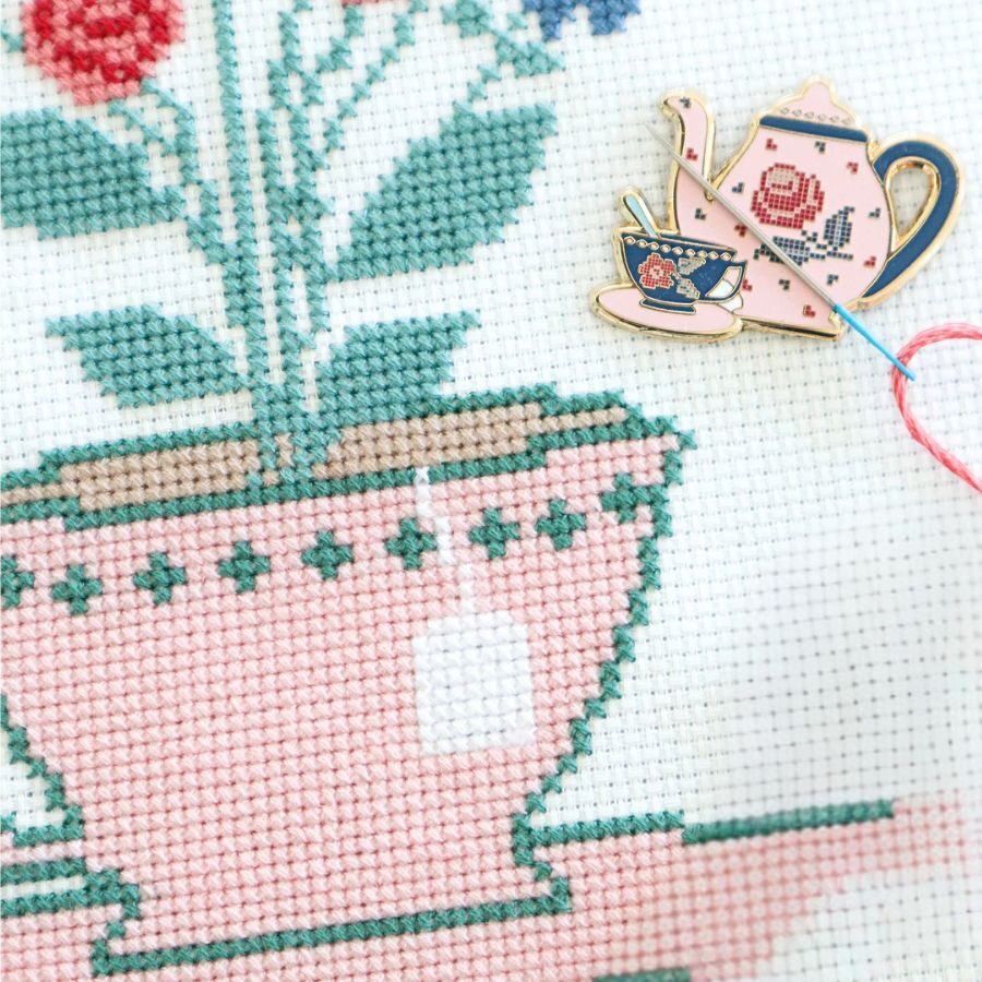 It's always time for Tea! This darling Roses Tea Set Needle Minder is the perfect companion for all your stitchy projects. It features a Teapot and cup set with darling cross stitch inspired flowers on them - there's even a sweet little spoon! With the magnet on the back of your stitching, and the minder on the front, all you have to do is place your needle on the minder and the magnet holds it in place! No more putting your needle through your fabric and leaving extra holes, or worrying about dropping it.